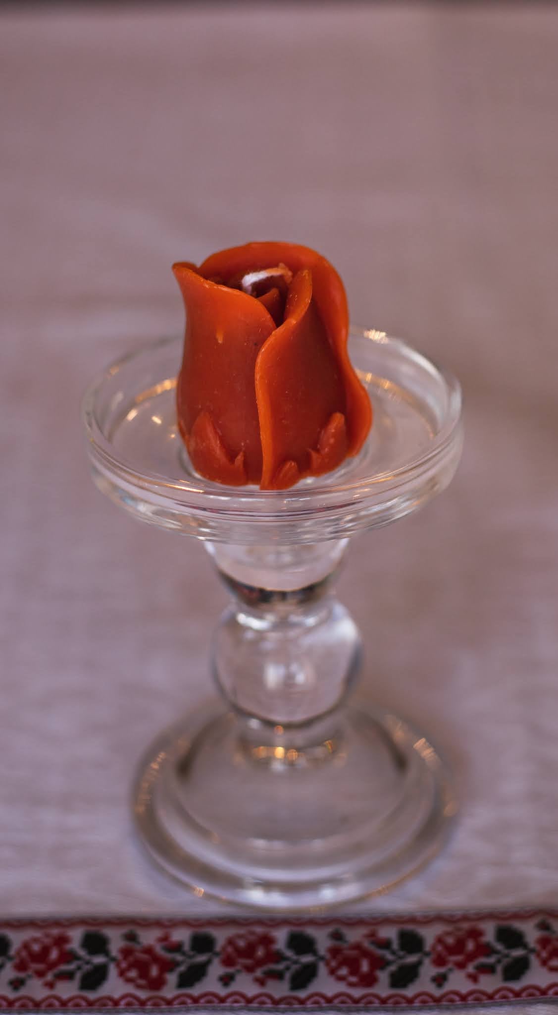 Bougie" tulipe" bougie en cire d'abeille. La bougie pèse 0.38g.
