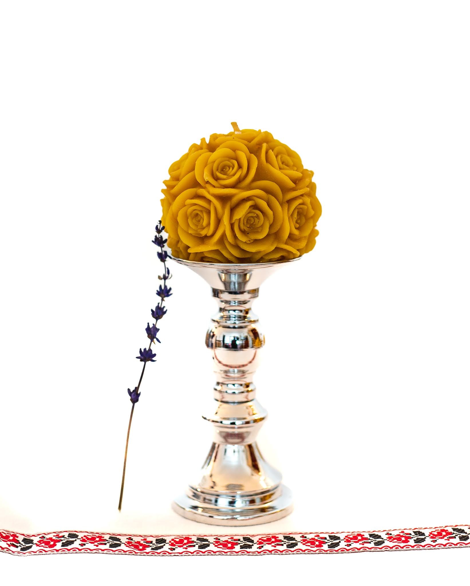 Bougie" Olympos" ( en grec Ὄλυμπος / Ólympos Olympe est traditionnellement le domaine des dieux de la Mythologie grecque), Pure bougie en cire d'abeille en forme de rose qui pese 0,271g.