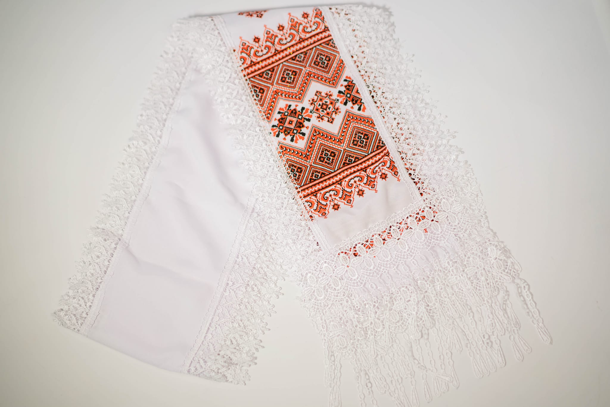 Bandeau traditionnel moldave pour le mariage orthodoxe avec des motifs traditionnels rouge. Vendu par 2.