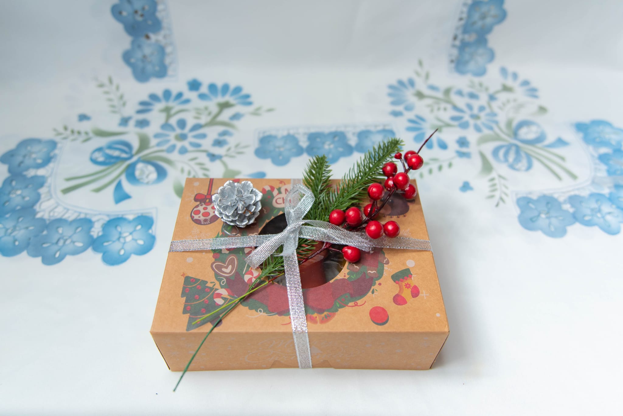 Coffret cadeau "Etoile" en boite composé d'un cône qui pese-54 g, flocons de neige-52g, sapin, cloche-25g et père Noel-34g et le sapin 38g. avec une duré de vie de 3h-6h